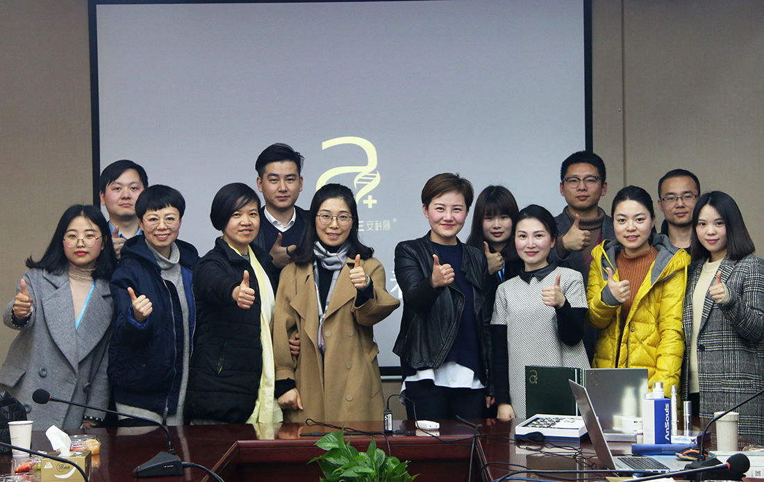 李坤經理講解結束,一行人便來到鑫華坤的工作室,近距離接觸安科麗品牌,經過簡單的了解后,由安科麗產品部經理李揚老師做更深層次的講解,從生物科技的運用到產品的使用方法,每一款產品都能看出安科麗人的用心,由此,908電臺的合作伙伴才對安科麗有了系統全面的認識。